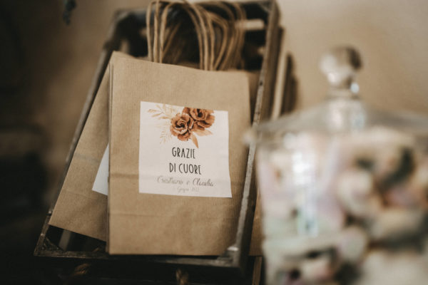 Il mio compito è quello di trasformarle in un dono elegante e memorabile: mi occupo della confezione e della personalizzazione con etichette, scatoline, tag e grafiche coordinate al vostro evento. In questo modo ogni bomboniera diventa parte integrante dello stile del matrimonio, in armonia con l’allestimento floreale e la stationery.