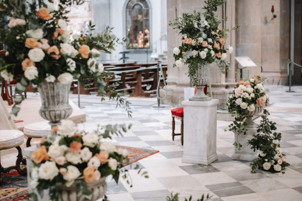 Allestimento floreale della navata e dell’altare